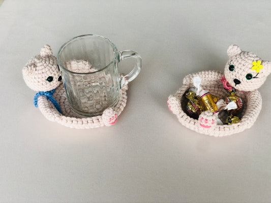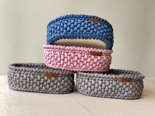 Crochet Oval Basket Wooden Bottom- 20 x 12 cm, Storage Organizer, Home Decor
