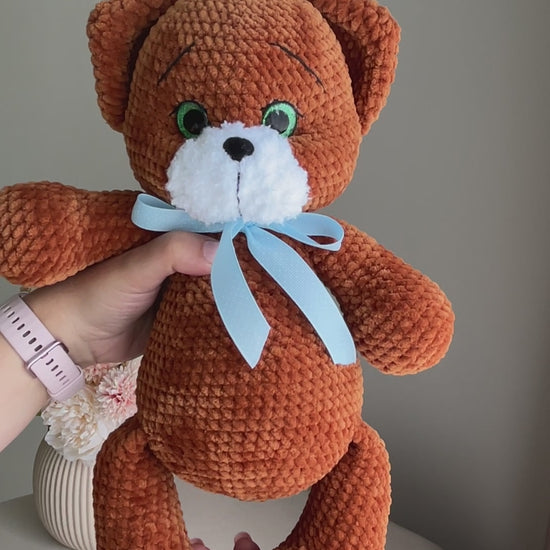 This crocheted 42 cm bear is crocheted from certified, high-quality yarn, ensuring both durability and a soft, cuddly texture. Filled with hypoallergenic polyfill, it’s perfect for children and adults alike.