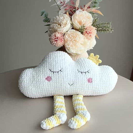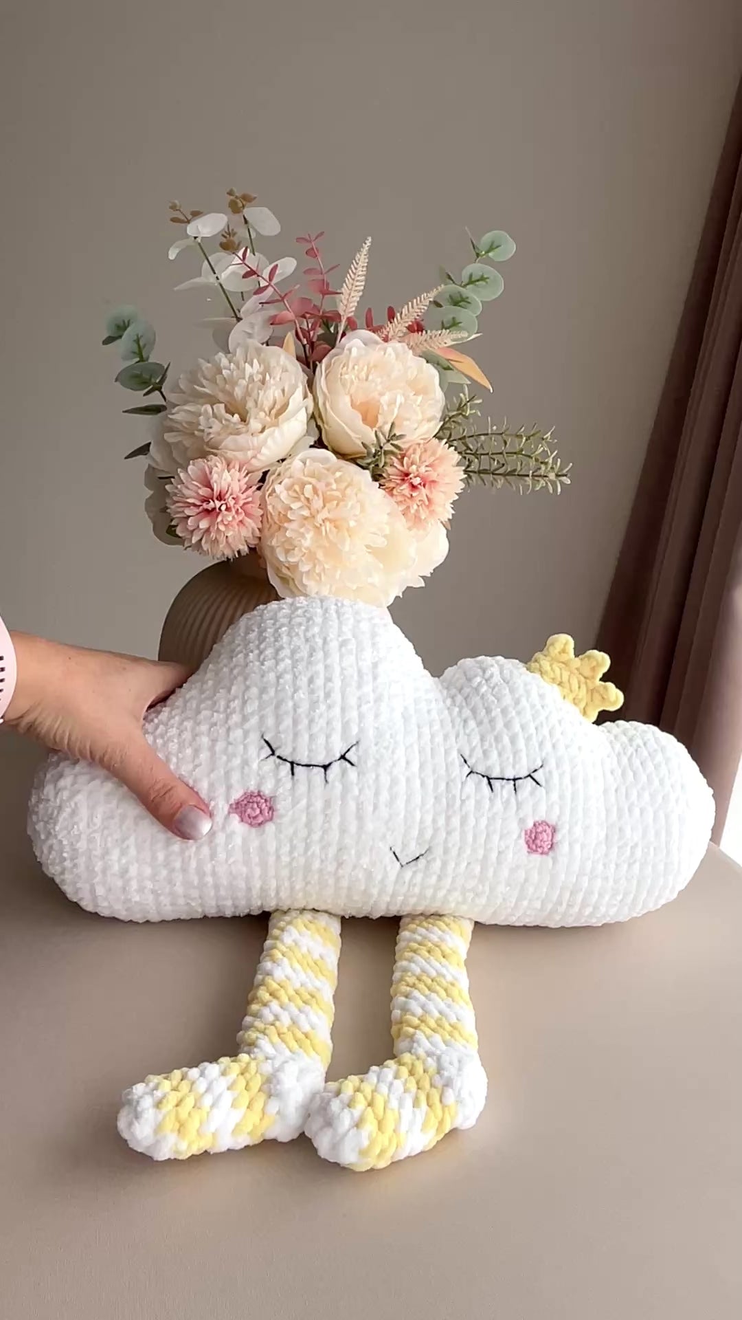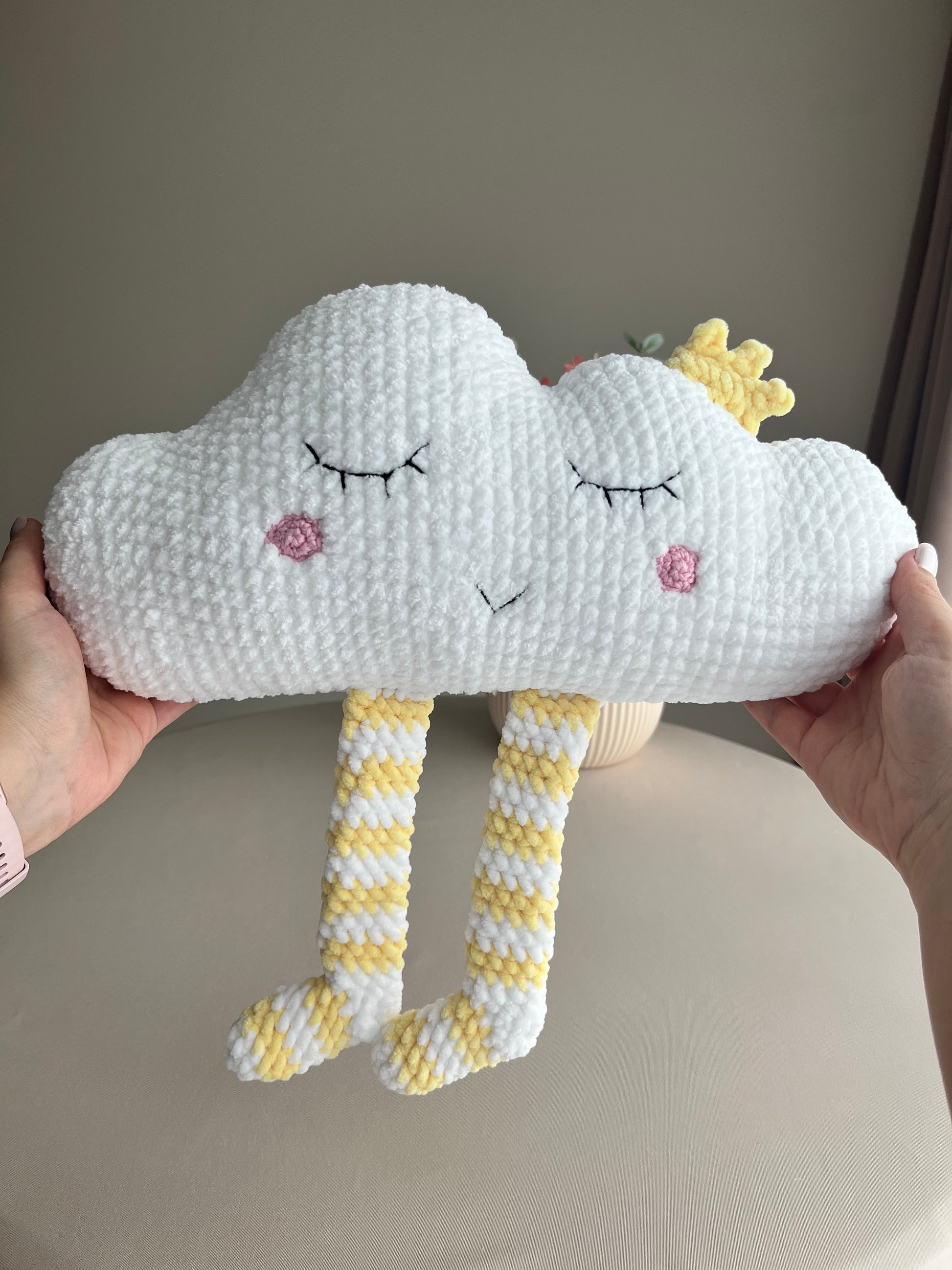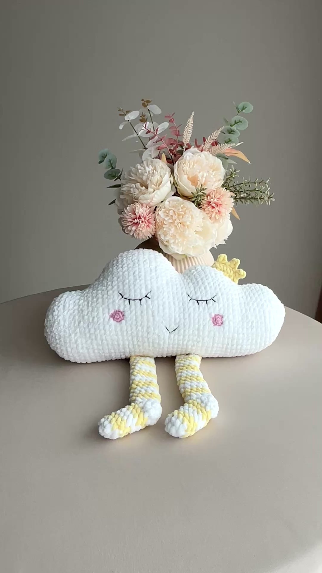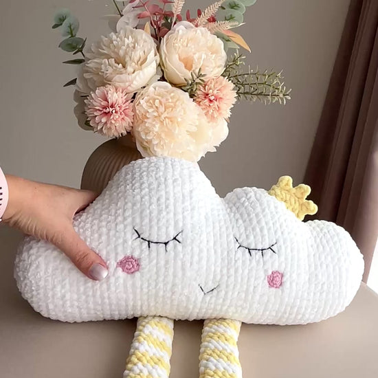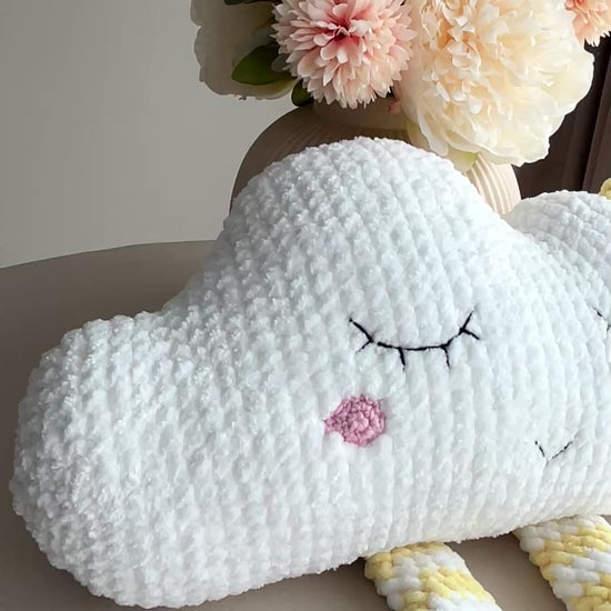 The sweet face is embroidered by hand, with sleepy eyes, a gentle smile, and blushing cheeks, giving the cloud its soft and dreamy look.